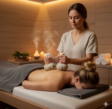 Siente los beneficios terapéuticos con las pindas calientes al vapor, saquitos de tela rellenas de plantas medicinales y aceites esenciales.